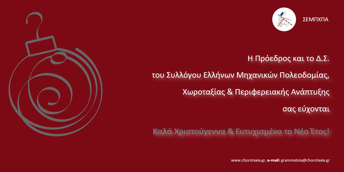 Tags: Εορταστικές ευχές από το ΔΣ του ΣΕΜΠΧΠΑ! Το ΔΣ του ΣΕΜΠΧΠΑ σας εύχεται ολόψυχα Καλά Χριστούγεννα και ένα Νέο Έτος γεμάτο υγεία, δημιουργικότητα και επαγγελματικές επιτυχίες!